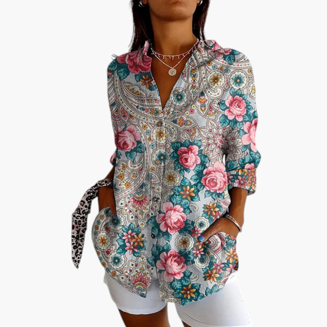 Imprimare florală timeless: Imprimarea elegantă cu flori în mai multe culori conferă bluzei un aer vintage care rămâne mereu în trend.