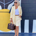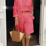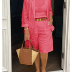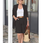 Imaginează-ți o plimbare pe faleza din Positano, soarele pe piele și o ținută ușoară care curge grațios cu fiecare pas. Laura combină sofisticarea de vară și confortul natural, având un blazer fluid și șorturi asortate perfecte pentru orice ocazie.