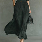 Plisurile delicate, reverul structurat și talie înaltă cu curea creează o siluetă fluidă și rafinată care combină perfect sofisticarea și confortul.